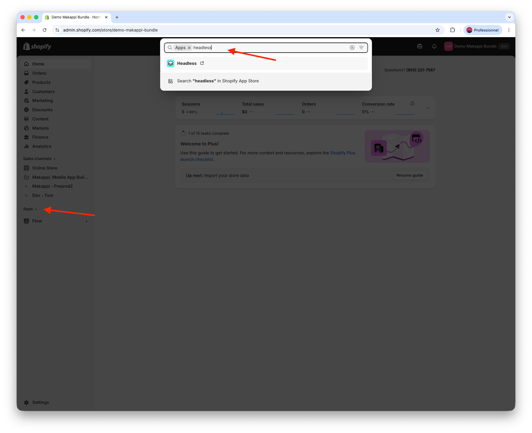 Vérifiez que l’application Headless est toujours installée sur votre boutique