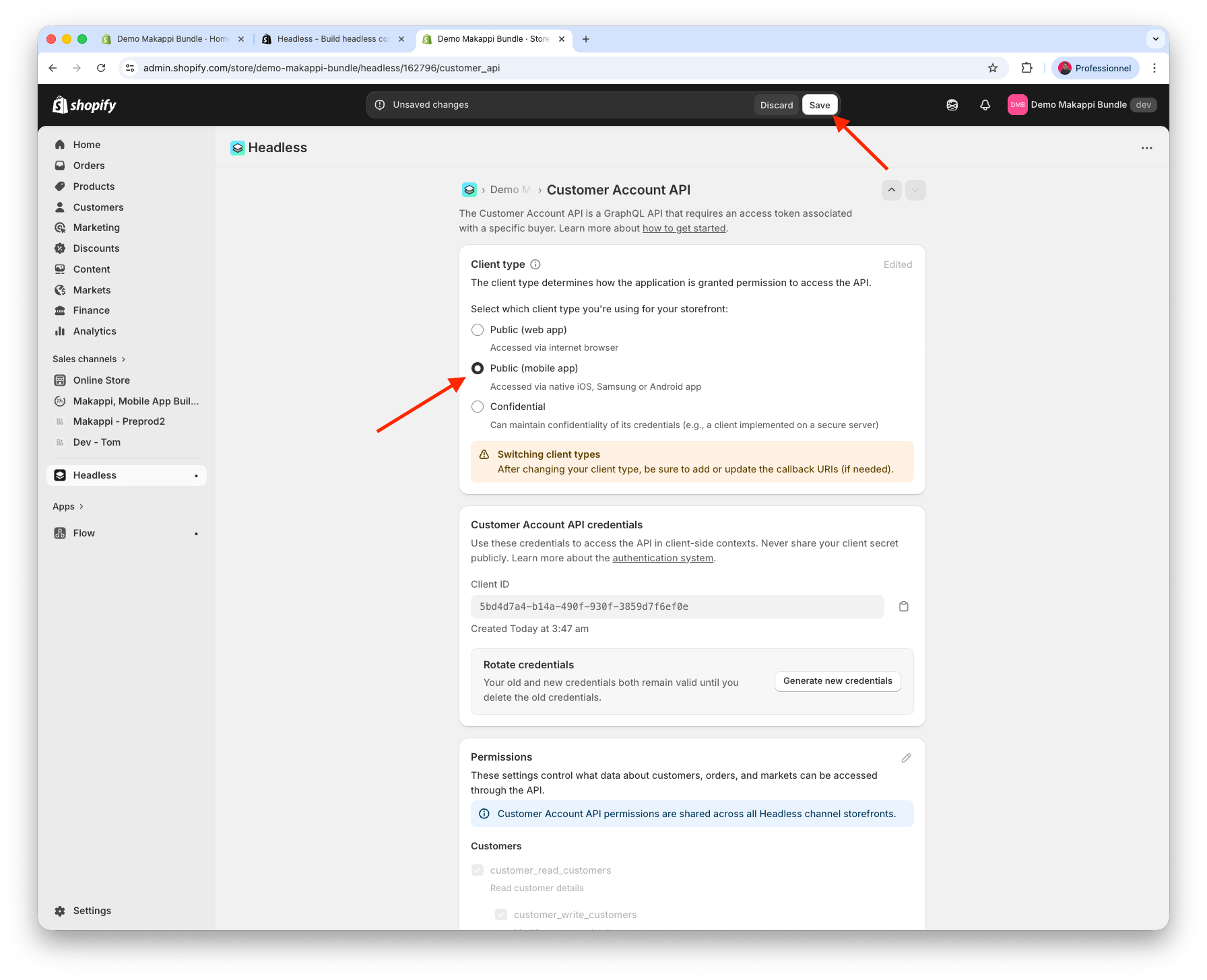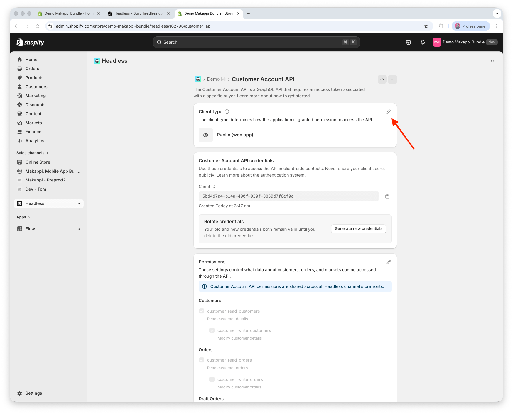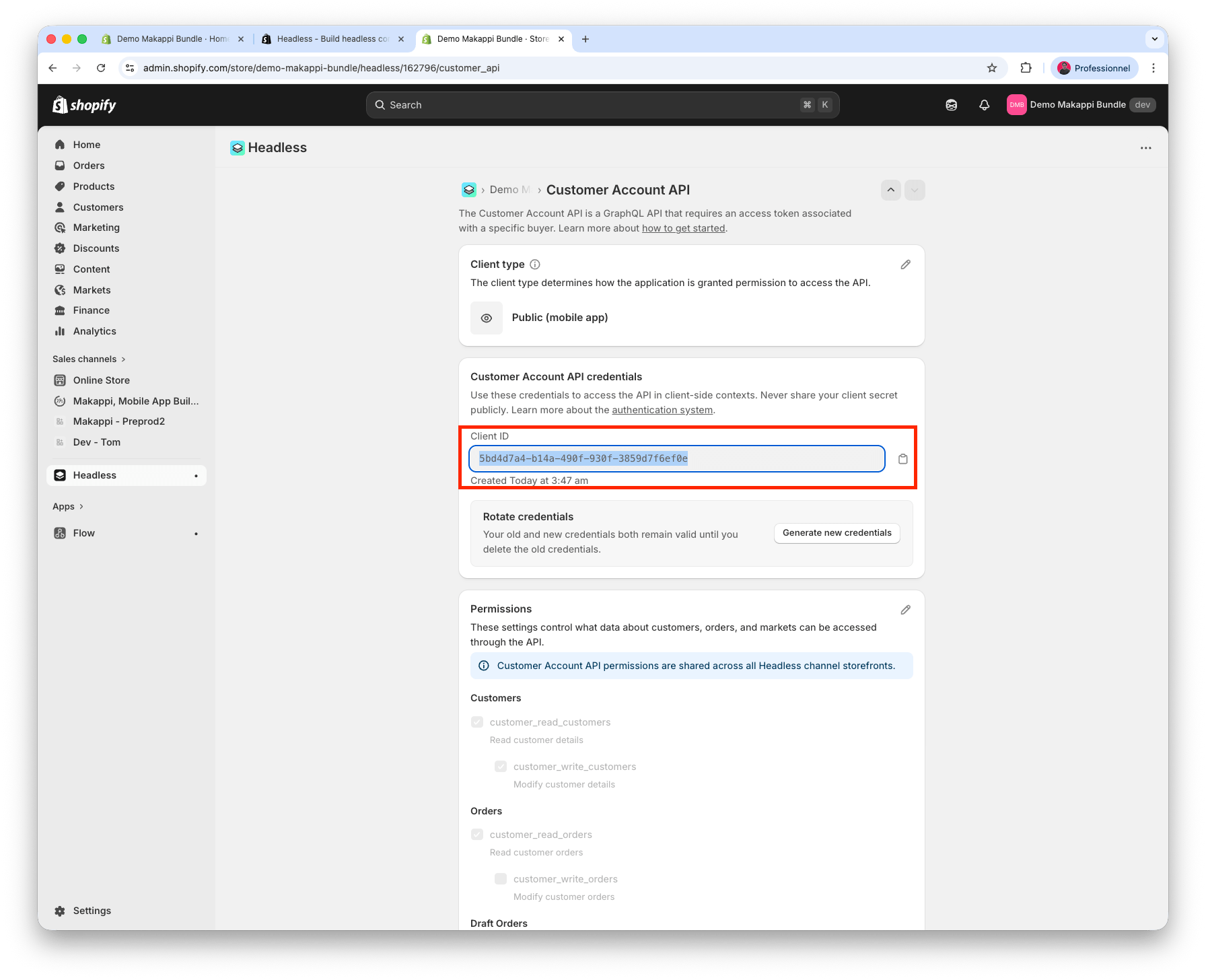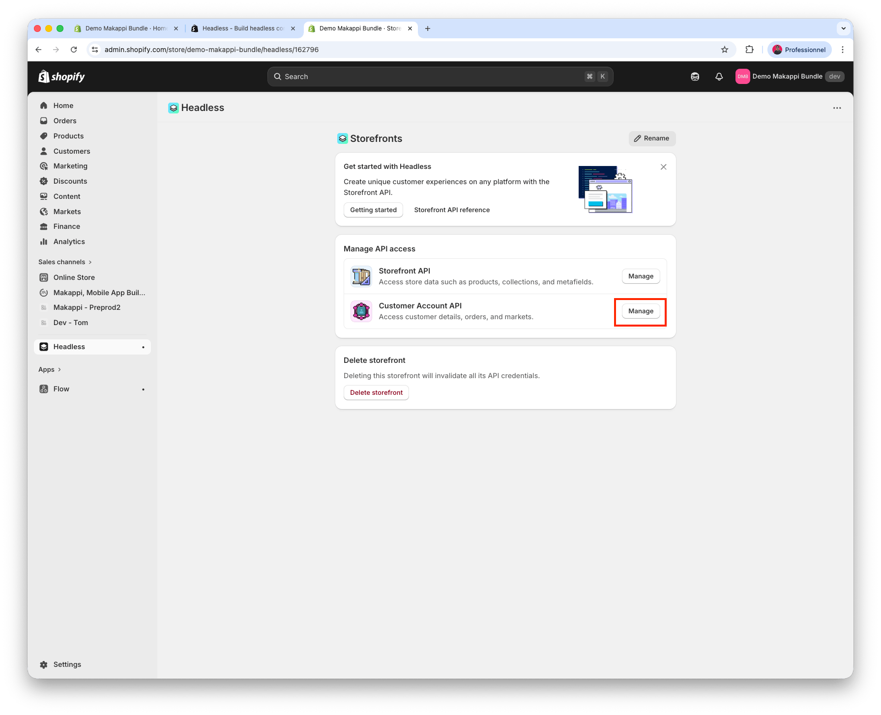 Ne désinstallez pas l’application Headless après cette étape. Elle doit rester installée pour que l’API Customer Account fonctionne.