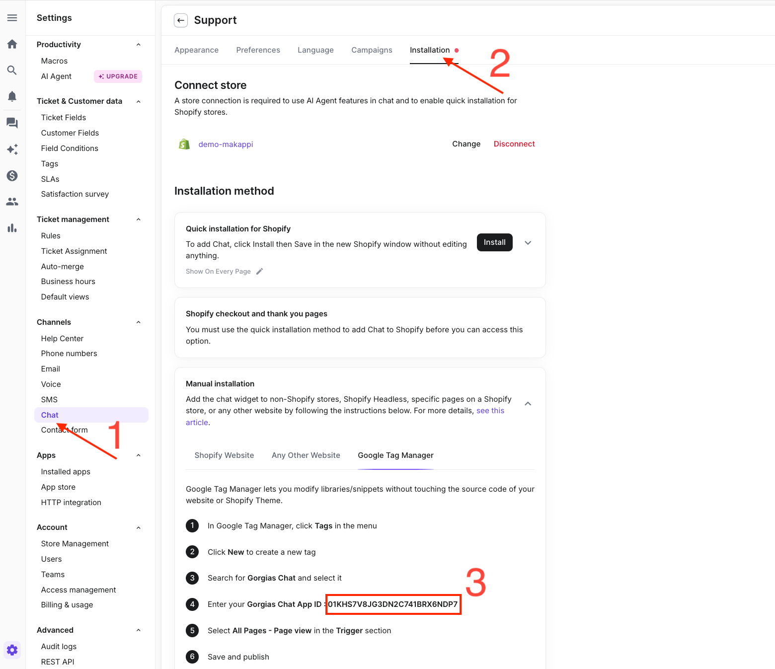 Pour trouver votre Application ID, suivez ces étapes dans votre tableau de bord Gorgias :